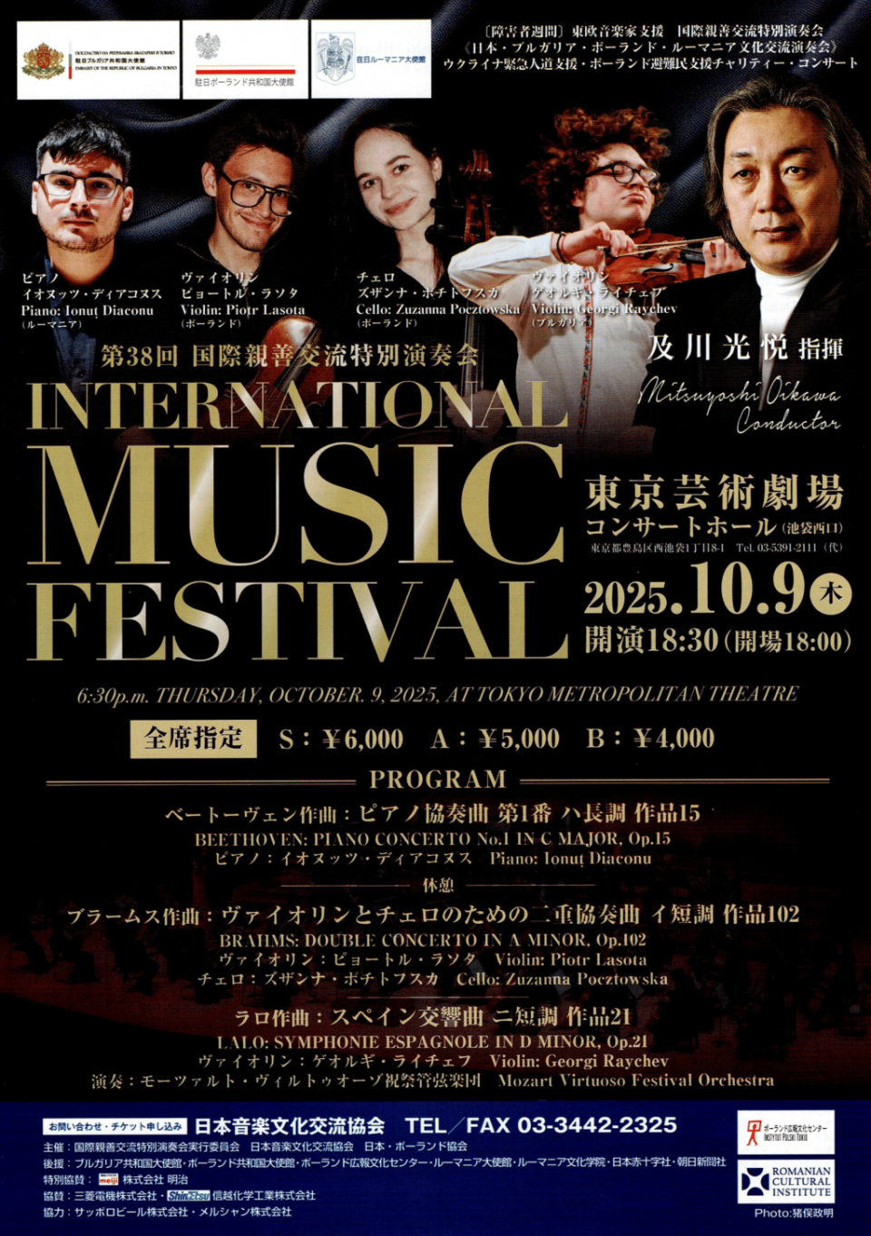 Institutul Cultural Român de la Tokyo sprijină desfășurarea International Music Festival, care va avea loc pe 9 octombrie 2025, începând cu ora 18:30, la prestigiosul Tokyo Metropolitan Theatre.