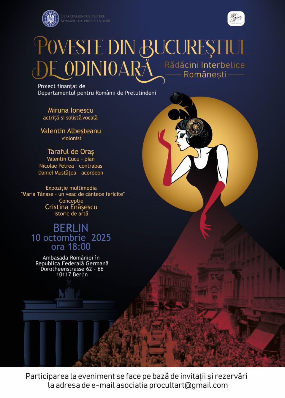 Am Freitag, dem 10. Oktober 2025, um 18:00 Uhr findet in der Botschaft von Rumänien in der Bundesrepublik Deutschland (Dorotheenstraße 62-66, 10117 Berlin) ein Abend statt, welcher der rumänischen Musik der 20er und 30er Jahre gewidmet ist – einem Musikstil, der die Zwischenkriegszeit geprägt hat.