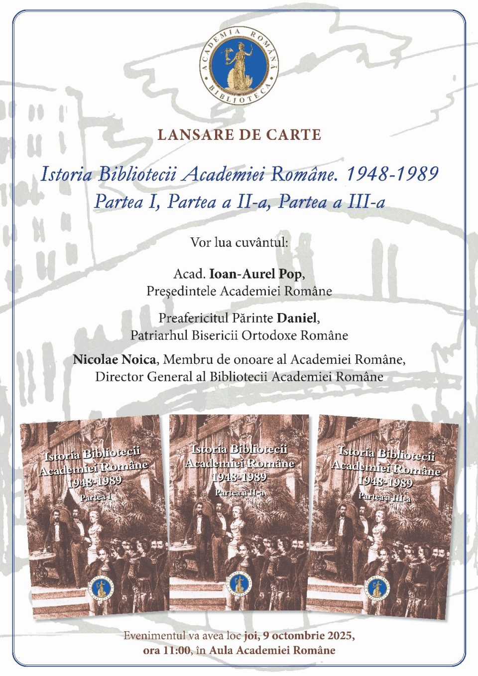 Joi, 9 octombrie 2025, ora 11, în Aula Academiei Române, va avea loc lansarea celor mai recente trei tomuri, consacrate celei mai dificile perioade din viața venerabilei instituții: anii grei ai totalitarismului comunist, 1948-1989, marcați de control drastic și cenzură.