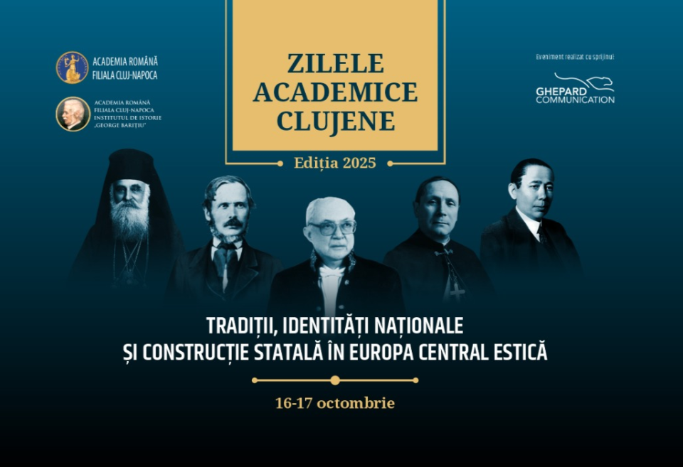 Institutul de Istorie „George Barițiu” al Academiei Române, în parteneriat cu Universitatea Babeș-Bolyai și Ghepard Communication, organizează, în perioada 16-17 octombrie 2025, conferința internațională „Tradiții, identități naționale și construcție statală în Europa Central-Estică”, manifestare științifică înscrisă în programul Zilelor Academice Clujene, Ediția XXXVIII. Deschiderea oficială va avea loc joi, 16 octombrie 2025, în incinta Hotelului Courtyard by Marriot, str. Avram Iancu, nr. 23-25, începând cu ora 9.