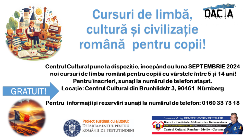 Cursurile de limba română din cadrul Centrului Cultural Româno-Moldav din Nürnberg au fost înființate în urmă cu patru ani, cu scopul de a menține vie legătura dintre copiii români din diaspora și limba, cultura și tradițiile țării lor de origine.