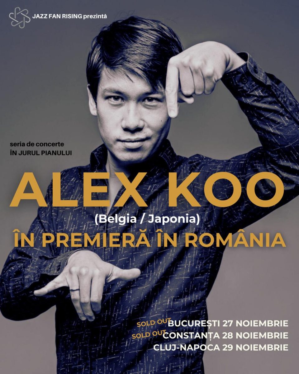 București, 25 noiembrie 2025  – Starul pianului belgian de jazz, Alex Koo vine în premieră în România în turneul JazzFanRising „În jurul pianului”. El va avea trei concerte, în reprezentație unică, la București – joi, 27 noiembrie 2025, de la ora 19:00, la Pavilionul Institutului Goethe (Calea Dorobanți, 32), la Constanța – vineri, 28 noiembrie 2025, de la ora 19:00, în sala Prestige, la Hotel Continental Forum și la Cluj-Napoca – sâmbătă, 29 noiembrie, de la ora 19:00, la Sala Studio a Academiei Naționale de Muzică Gh. Dima (str. Hermann Oberth, 2).