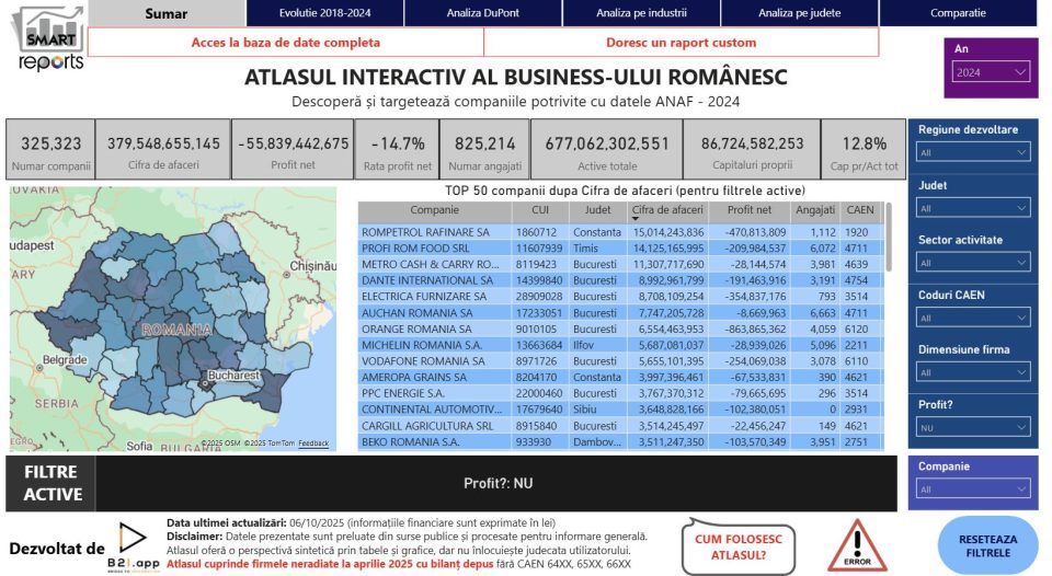 Mediul de afaceri românesc traversează un nou vârf al companiilor neprofitabile. Din cele aproximativ 920.000 de firme care au depus bilanțul pentru anul fiscal 2024, peste 325.000 au încheiat anul pe pierdere, arată datele disponibile. Numărul companiilor cu rezultat negativ este semnificativ mai mare decât în 2023, când au fost raportate 283.000, și aproape dublu față de 2018, când figurau 193.000 de firme.