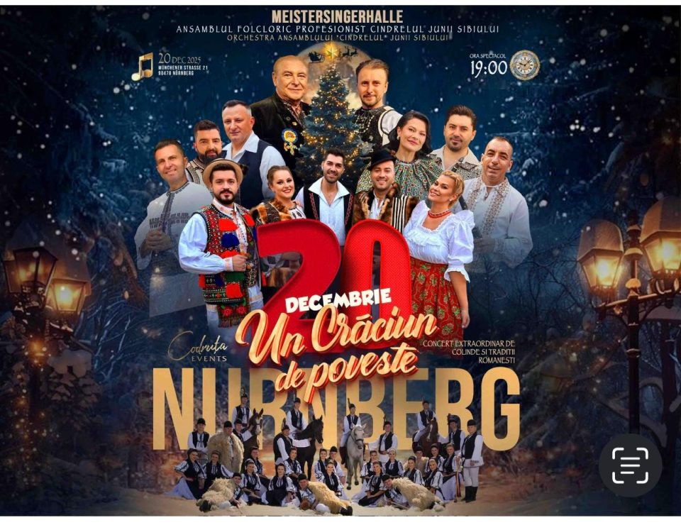 NÜRNBERG, Germania În seara de 20 Decembrie 2025, comunitatea românească din Germania și iubitorii culturii tradiționale românești sunt invitați la un eveniment de excepție: „Un Crăciun de Poveste”, un concert-spectacol grandios, prezentat în premieră la Nürnberg, în impunătoarea Meistersingerhalle – Sala Mare.