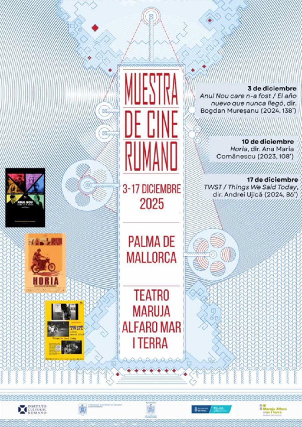 Institutul Cultural Român de la Madrid inaugurează la Palma de Mallorca miercuri, 3 decembrie 2025, cea de-a XV-a ediție a Festivalului de film românesc/Muestra de Cine Rumano, în colaborare cu Consulatul onorific al României în Insulele Baleare, Primăria Palma și Teatrul Maruja Alfaro Mar i Terra.