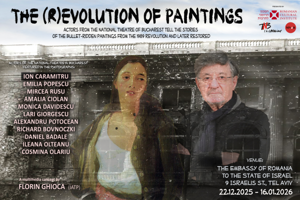 În perioada 22 decembrie 2025 – 16 ianuarie 2026 ICR Tel Aviv va prezenta, în format outdoor, proiectul multimedia „(R)Evoluția tablourilor”, ca invitație de a reflecta asupra istoriei recente a României prin artă, tehnologie și performanță, în contextul comemorării Revoluției din 1989. Deschiderea expoziției va avea loc luni, 22 decembrie 2025, la sediul Institutului Cultural Român din Tel Aviv, eveniment ce va cuprinde proiectarea videoclipurilor care acompaniază fiecare lucrare, alături de intervenția pe platforma Zoom a autorului acestui proiect, fotograful Florin Ghioca.