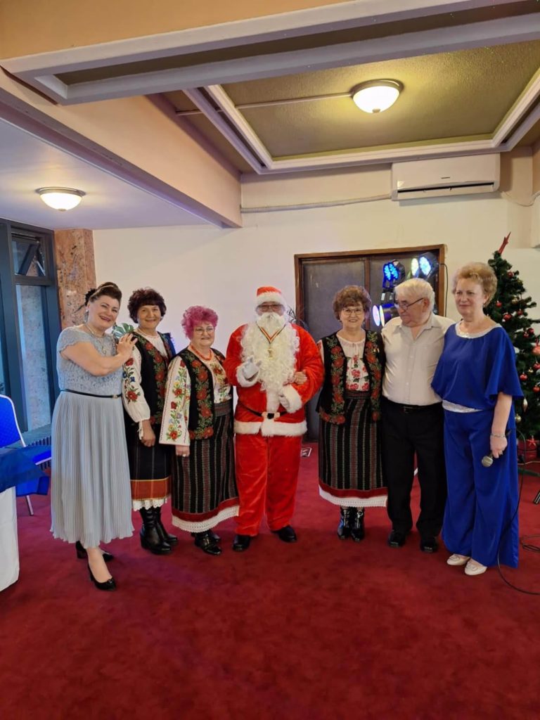 Sub masca lui Moș Crăciun l-am descoperit pe umoristul Eugen-Paul Popa, care s-a alăturat invitaților pentru un moment de destindere și pentru a asculta colindul interpretat de ,,Grupul Zorile”, format din poeta Rodica Murgu, Miorița Romilă și Maricica Vulpe.