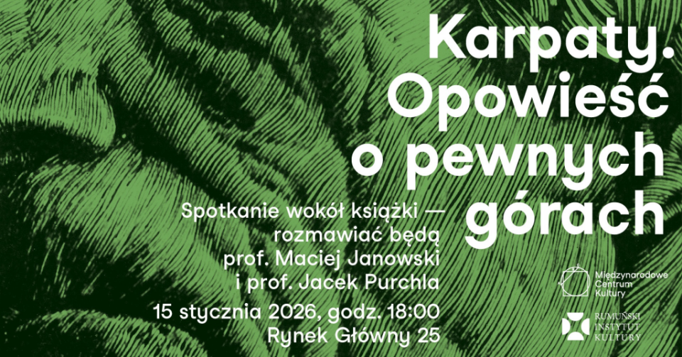 În 15 ianuarie, zi simbolică pentru cultura română, ICR Varșovia împreună cu Centrul Internațional pentru Cultură de la Cracovia (MCK) invită publicul la un eveniment care are în centru una dintre importantele premiere editoriale ale iernii 2025/2026 în Polonia: volumul Carpații. Povestea unor munți al profesorului Maciej Janowski, publicat de MCK în prestigioasa serie Biblioteka Europy Środka / Biblioteca Europei Centrale.
