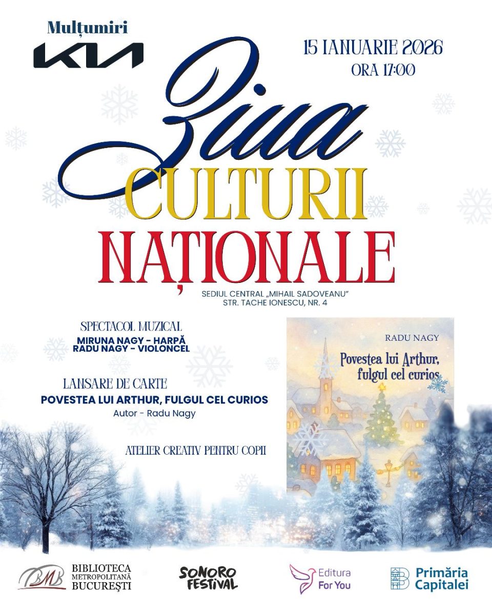Cu prilejul Zilei Culturii Naționale, Primăria Municipiului București, prin Biblioteca Metropolitană București deschide anul 2026 printr-un eveniment cultural de excepție, dedicat copiilor și familiilor, în care literatura, muzica și creativitatea se întâlnesc într-o experiență unică, spectaculoasă și profund formativă. Acesta va avea loc joi, 15 ianuarie 2026, de la ora 17:00, la Sediul Central „Mihail Sadoveanu” al Bibliotecii Metropolitane București, din str. Tache Ionescu nr. 4, București.