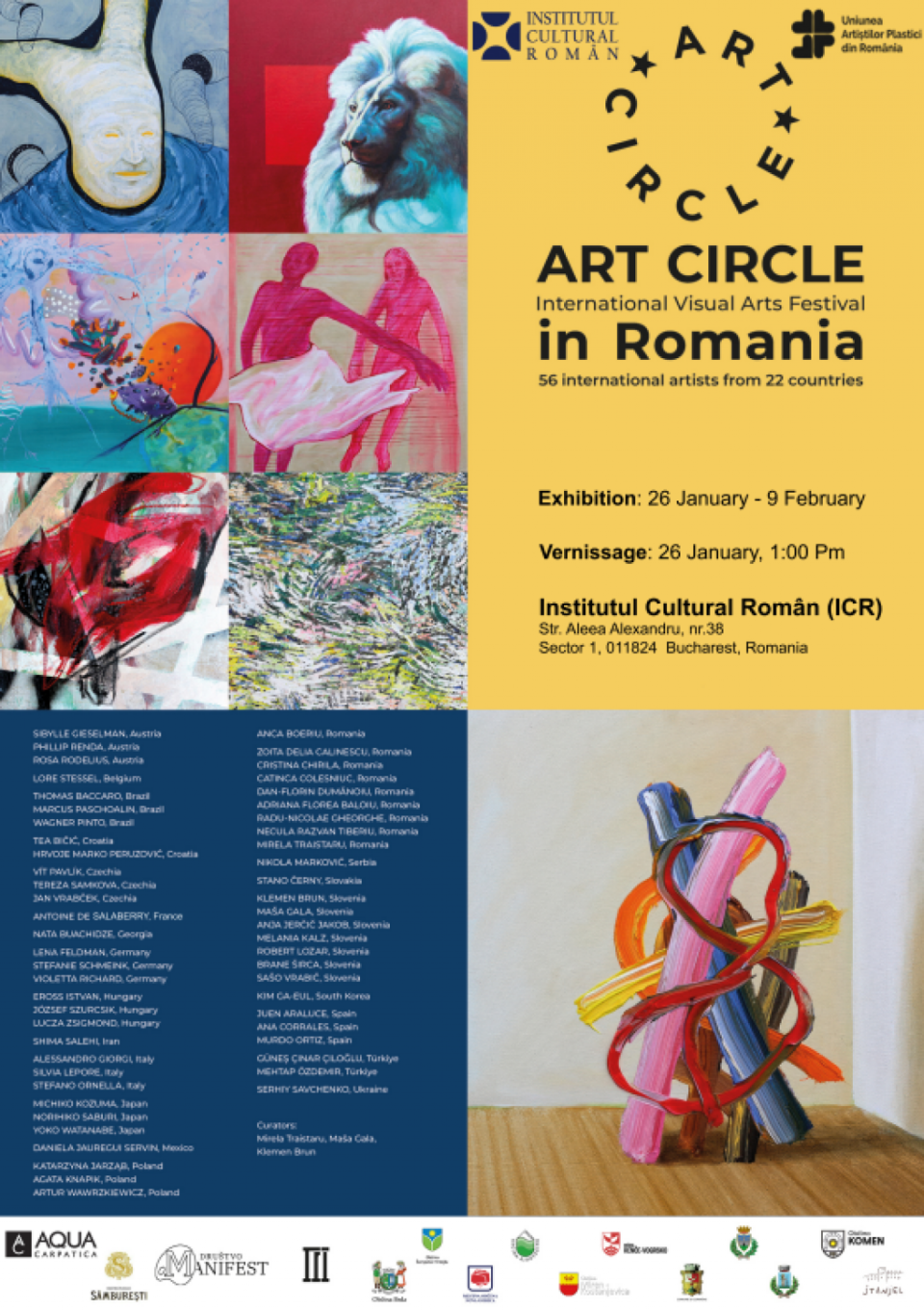 Institutul Cultural Român găzduiește, în Sala Mare, o amplă expoziție retrospectivă dedicată programului ArtCircle Residence, o platformă internațională de rezidență artistică organizată în Slovenia, care reunește artiști din spații culturale diverse și promovează dialogul intercultural prin intermediul artelor vizuale.