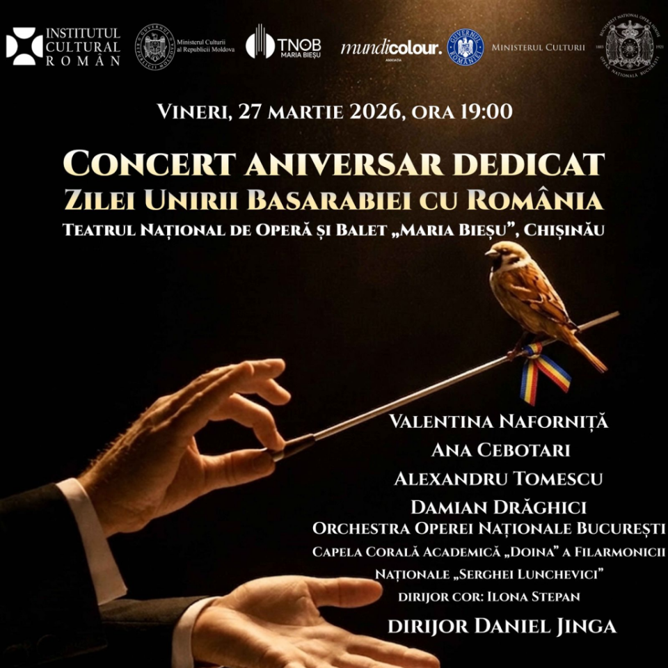 De Ziua Unirii Basarabiei cu România, moment istoric de referință pentru identitatea și unitatea culturală românească, Institutul Cultural Român, în parteneriat cu Ministerul Culturii din Republica Moldova, organizează concertul Orchestrei Operei Naționale București, instituție subordonată Ministerului Culturii din România, vineri, 27 martie, ora 19.00, la Teatrul Național de Operă și Balet „Maria Bieșu” din Chișinău.
