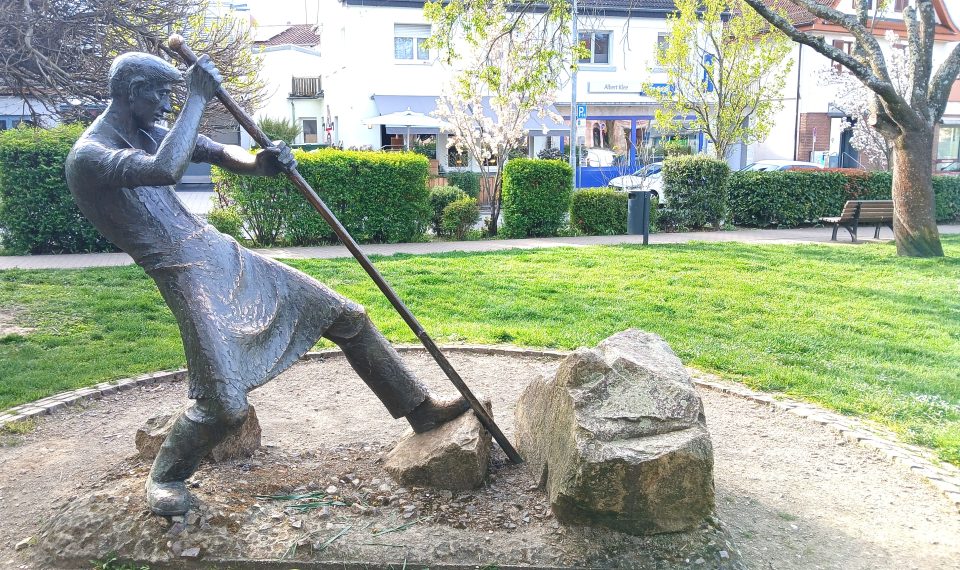 Făcând cercetări în acest sens, am aflat câteva detalii interesante despre această lucrare, pe care o consider o adevărată operă de artă. Am aflat că lucrarea reprezintă un simbol al identității locale din Dossenheim și că se numește „Steinbrecher” (Spărgătorul de piatră). Din punct de vedere al semnificației sale istorice, statuia reprezintă un omagiu adus muncitorilor din carierele de piatră care au definit istoria localității. În secolele al XIX-lea și al XX-lea, Dossenheim a fost cunoscut sub numele de „Steinbrecherdorf” (satul spărgătorilor de piatră). Extracția de riolit (o rocă vulcanică) din carierele de pe muntele din apropiere (cum este cariera Leferenz) a fost principala sursă de venit pentru locuitorii acestei zone.