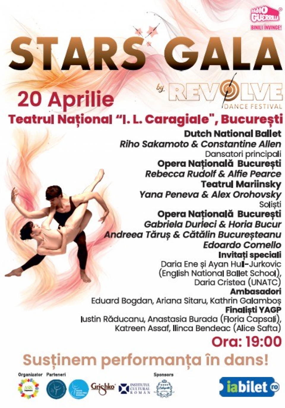 BUCUREȘTI, 17 martie 2026 – Asociația Mapamond și Revolve Dance anunță turneul național Stars Gala, o producție de elită ce aduce excelența coregrafică în inima marilor orașe din România. Turneul debutează pe 20 aprilie la Teatrul Național „I.L. Caragiale” din București, urmat de reprezentații la Galați (27 aprilie), Timișoara (28 aprilie) și Iași (4 mai).