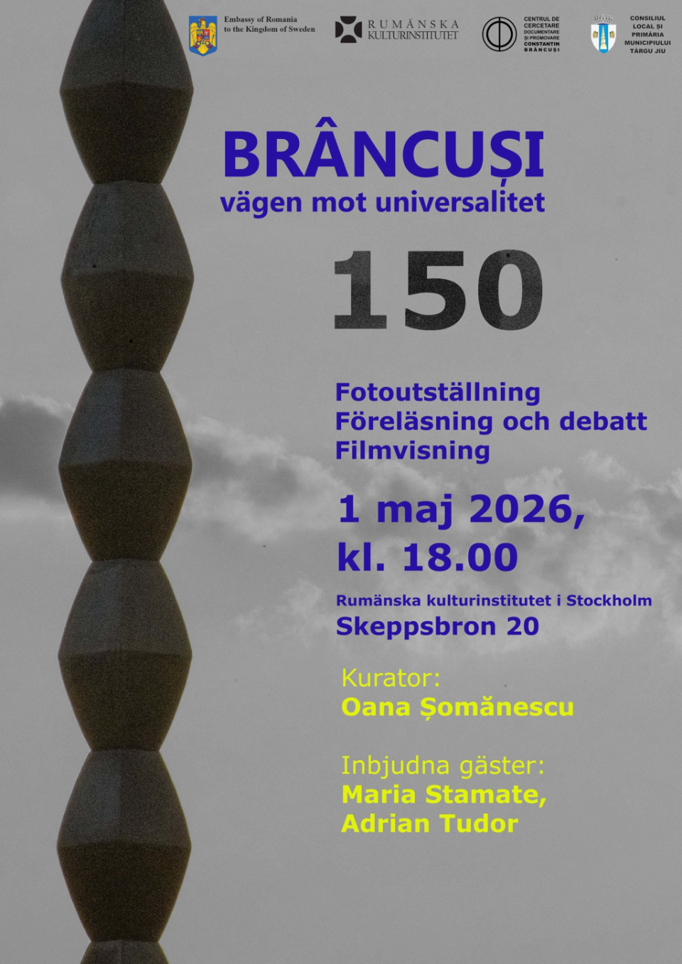 Institutul Cultural Român de la Stockholm, în colaborare cu Ambasada României în Regatul Suediei, Centrul de Cercetare, Documentare și Promovare „Constantin Brâncuși” din Târgu Jiu și Primăria Municipiului Târgu Jiu, organizează evenimentul „Brâncuși, drumul către universalitate”, o expoziție de fotografie documentară însoțită de proiecții și de o prelegere, dedicate aniversării a 150 de ani de la nașterea sculptorului român Constantin Brâncuși. Deschiderea pentru public a expoziției va avea loc în data de 1 mai 2026, ora 18.00, la sediul ICR Stockholm, în prezența cercetătoarei Maria Stamate, brâncușolog, și a viceprimarului orașului Târgu-Jiu, Adrian Tudor.